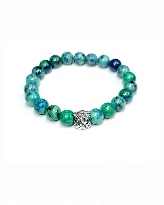 Azurite & Silver Ganesh Bracelet – Spiritual Wisdom, Clarity & Divine Protection